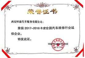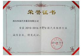 2015年 11 月,恒泰榮獲“中國汽車維修行業(yè)誠信企業(yè)”稱號;