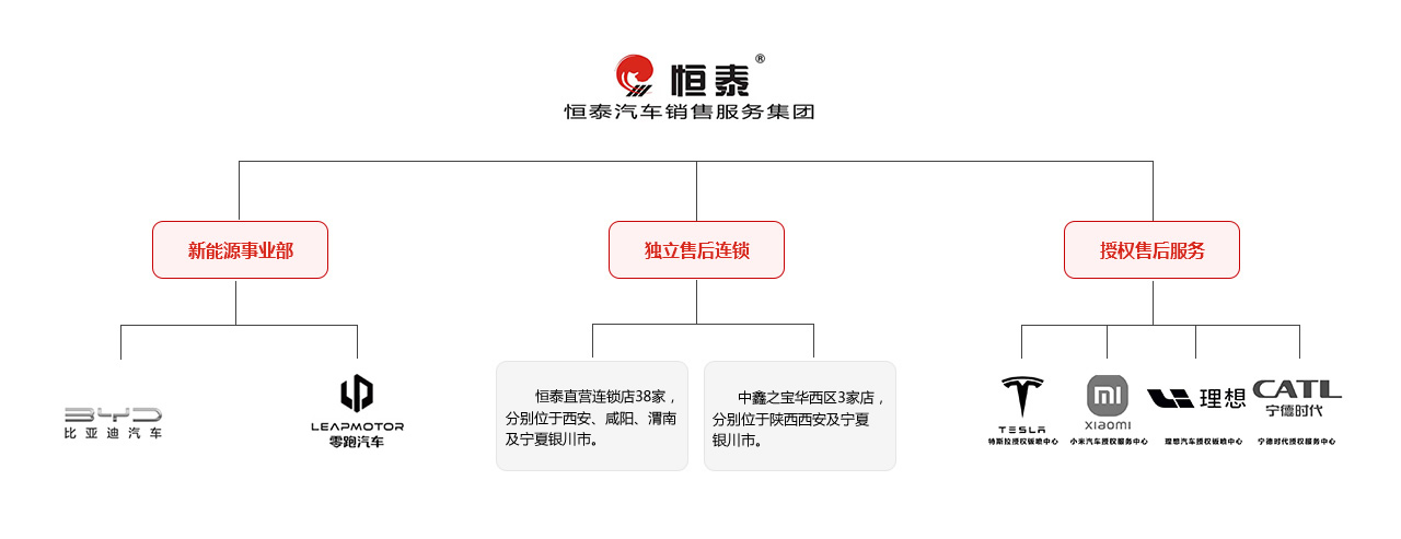 恒泰發(fā)展至今已成為集新能源汽車銷售、汽車品牌授權(quán)服務(wù)及獨立售后連鎖服務(wù)的綜合性汽車銷售服務(wù)集團。